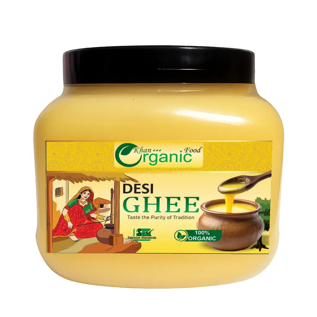 Discover the unmatched taste and health benefits of Khan Organic Desi Ghee – crafted with time-honoured techniques and pure ingredients. Our ghee is made from the finest quality milk, using the Bilona method, delivering a product that’s 100% natural, clean, and authentic.